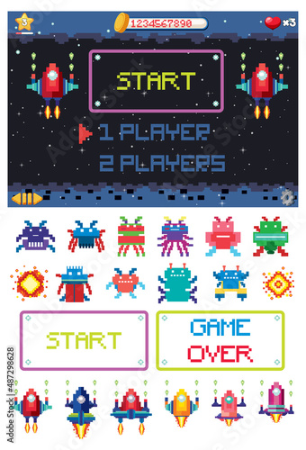 Obraz premium Retro pixel space game interface