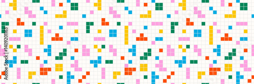 © gorozhinak, Fototapeta premium Retro pixeled sprinkle seamless pattern. Fun colored shapes background. Abstract graphic art vector wallpaper.