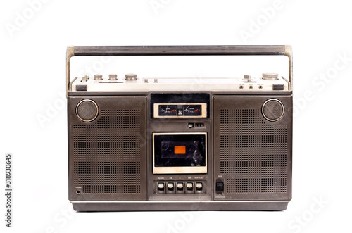 Fototapeta premium Retro portable stereo radio cassette recorder isolated on white background