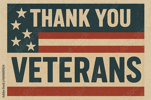 © Marina, Fototapeta premium Retro propaganda style vintage poster with bold letters "Thank You Veterans"