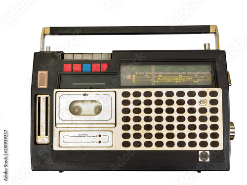 © vlabo, Fototapeta premium Retro radio and tape player on white background, Cassette player