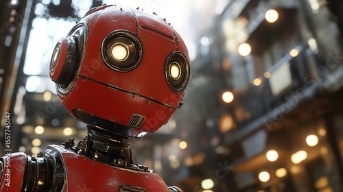© Zahid, Fototapeta premium Retro red robot waving hello – transparent background