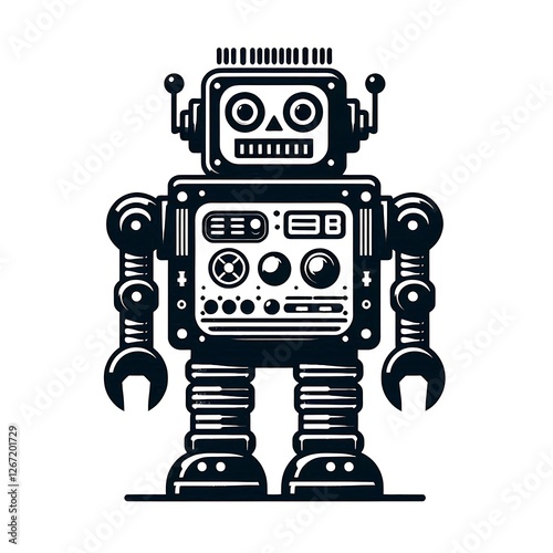 Fototapeta premium Retro Robot Illustration in Monochrome Style – Futuristic Technology Design