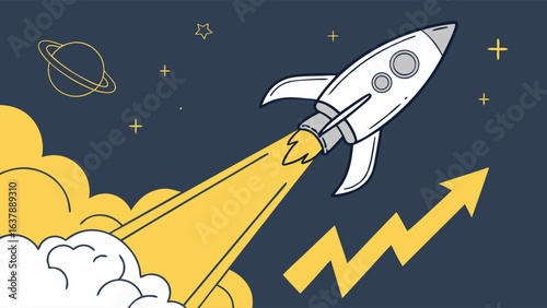 © Kovavic, Naklejka premium Retro Rocket Launching into Space with Growth Arrow.