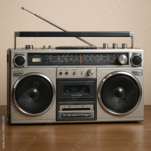 Fototapeta premium Retro 1980s boombox stereo system with authentic vintage cassette player design