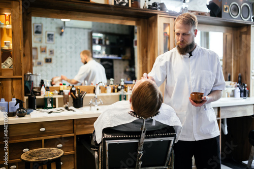 © NDABCREATIVITY, Obraz premium Retro shaving with foam