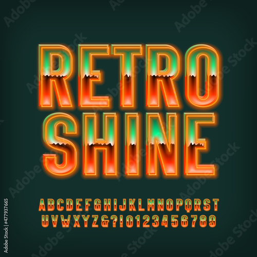 Fototapeta premium Retro Shine alphabet font. Neon glowing letters and numbers. Stock vector...