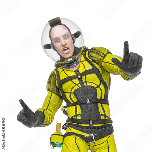 © DM7, Obraz premium retro space astronaut is doing a what is going on meme pose