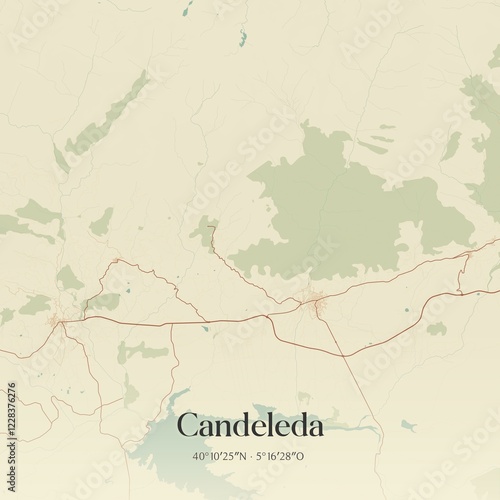 © Rezona, Fototapeta premium Retro Spanish map of Candeleda, Castilla y Le�n. Vintage street map.