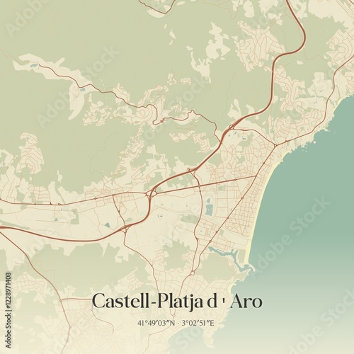 © Rezona, Fototapeta premium Retro Spanish map of Castell-Platja d'Aro, Catalu�a. Vintage street map.