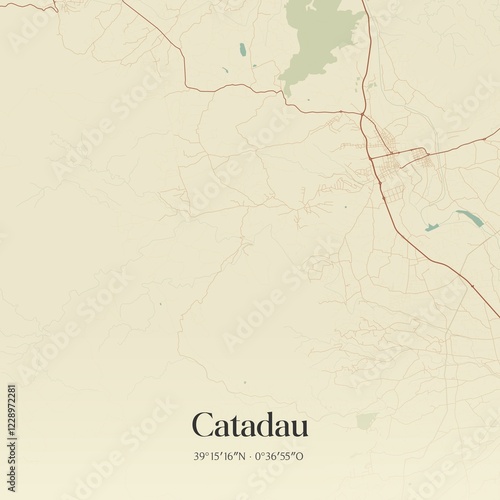 © Rezona, Fototapeta premium Retro Spanish map of Catadau, Comunidad Valenciana. Vintage street map.