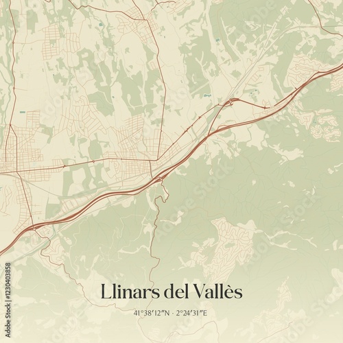 © Rezona, Fototapeta premium Retro Spanish map of Llinars del Vall�s, Catalu�a. Vintage street map.