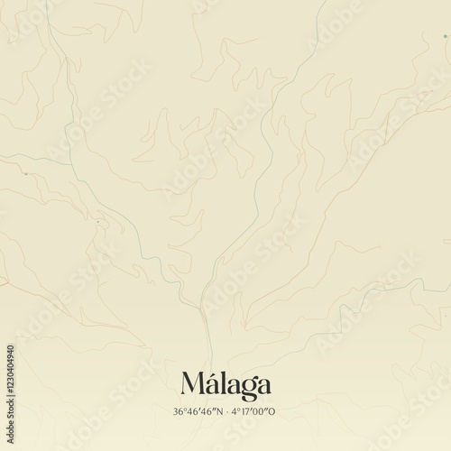 © Rezona, Fototapeta premium Retro Spanish map of M�laga, Andaluc�a. Vintage street map.
