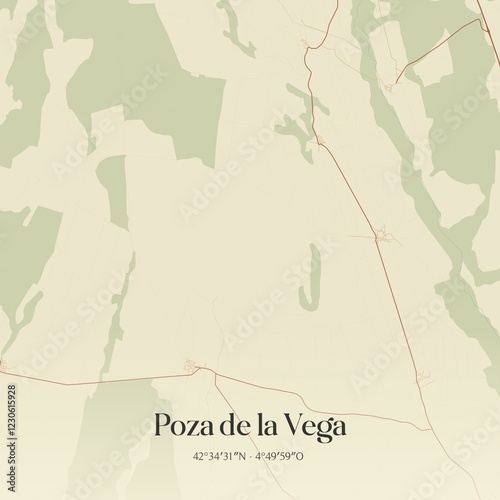 © Rezona, Fototapeta premium Retro Spanish map of Poza de la Vega, Castilla y Le�n. Vintage street map.