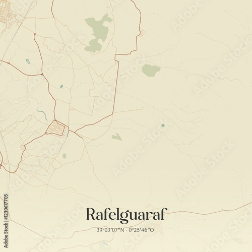 © Rezona, Fototapeta premium Retro Spanish map of Rafelguaraf, Comunidad Valenciana. Vintage street map.