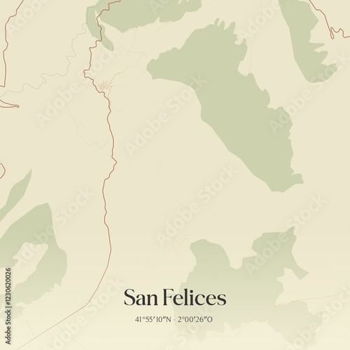 © Rezona, Fototapeta premium Retro Spanish map of San Felices, Castilla y Le�n. Vintage street map.