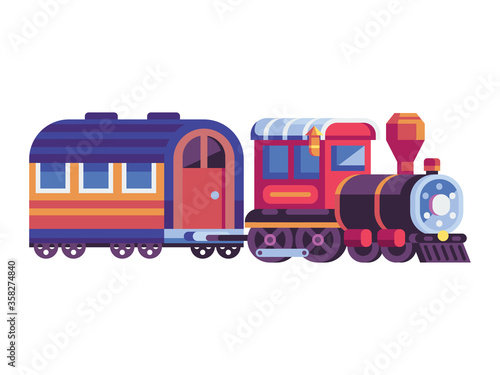 Obraz premium Retro Steam Train with Wagon in Flat