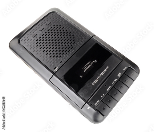 © philip kinsey, Obraz premium Retro style audio compact cassette player and recorder in black isolated on a white background