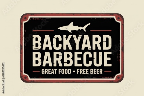 Fototapeta premium Retro-style BBQ sign promoting free beer.