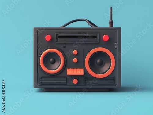 Fototapeta premium Retro-style black boombox with red accents and an antenna against a bright...