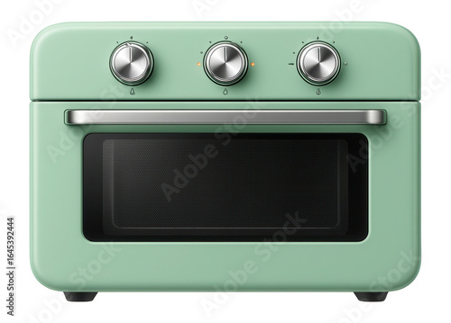 © studioworkstock, Obraz premium Retro-style digital oven in pastel green with rotary dials and LED indicators