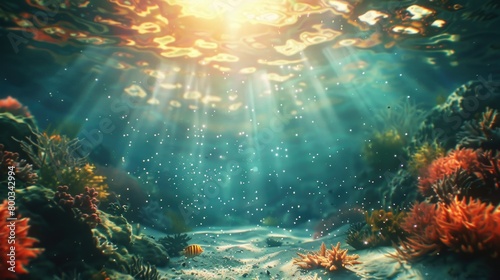 © darshika, Fototapeta premium Retro style marine landscape with underwater view