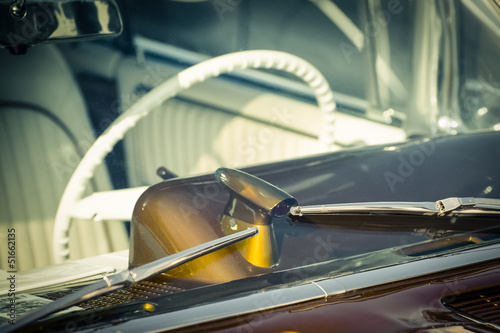 © Steve Mann, Fototapeta premium retro styled vehicle windshield and steering wheel