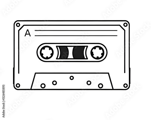 Fototapeta premium Retro Tape, Cassette black and white isolated icon clipart drawing, Side A analog audio