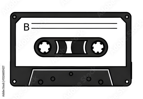 © LilliM, Fototapeta premium Retro Tape, Cassette black and white isolated icon clipart drawing, side B analog audio