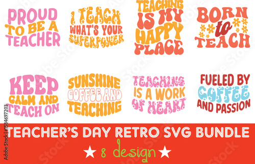 © Fazzlul1980, Fototapeta premium Retro Teacher SVG Bundle Vintage Typography School Design, Educator Appreciation Clip-art Pack