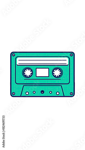 Obraz premium Retro Teal Cassette Tape Music Storage Device Illustration.