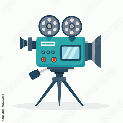 © Launa, Obraz premium Retro Teal Movie Camera on Tripod