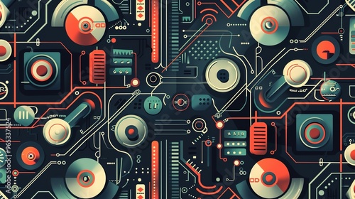 © pixelwallpaper, Obraz premium Retro techonlogy pattern wallpaper