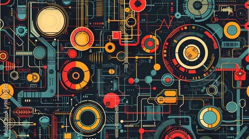 © pixelwallpaper, Obraz premium Retro techonlogy pattern wallpaper