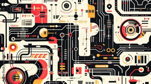 © pixelwallpaper, Obraz premium Retro techonlogy pattern wallpaper