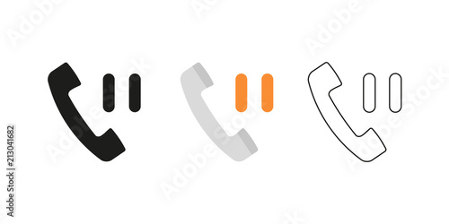 Fototapeta premium Retro telephone receiver. Three different styles: black, color and outline. Handset symbol. Pause sign. Vector illustration, flat design