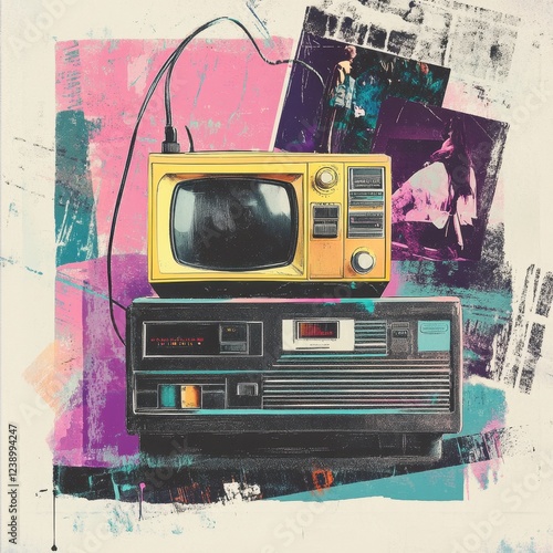 Fototapeta premium Retro Television and VCR Player with Abstract Background