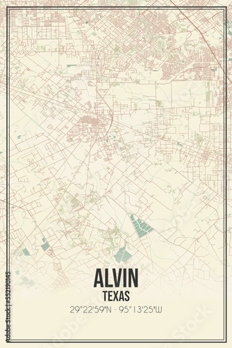 © Rezona, Fototapeta premium Retro US city map of Alvin, Texas. Vintage street map.