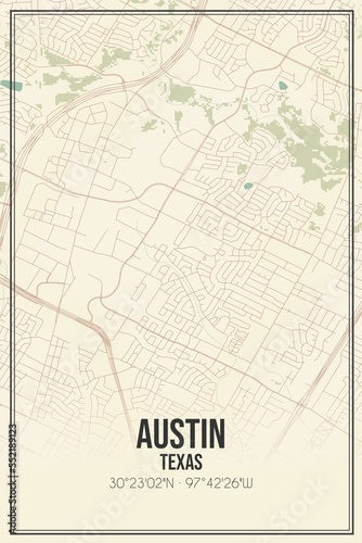 © Rezona, Obraz premium Retro US city map of Austin, Texas. Vintage street map.
