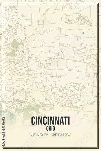 © Rezona, Fototapeta premium Retro US city map of Cincinnati, Ohio. Vintage street map.