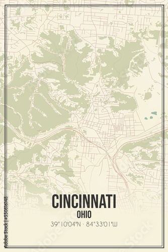 Obraz premium Retro US city map of Cincinnati, Ohio. Vintage street map.