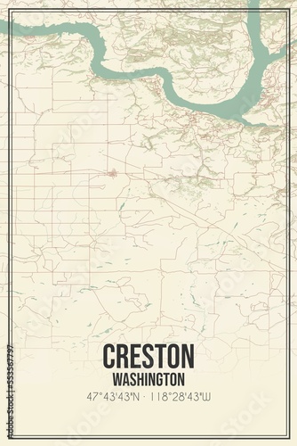 © Rezona, Fototapeta premium Retro US city map of Creston, Washington. Vintage street map.