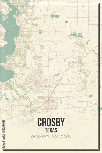 © Rezona, Fototapeta premium Retro US city map of Crosby, Texas. Vintage street map.