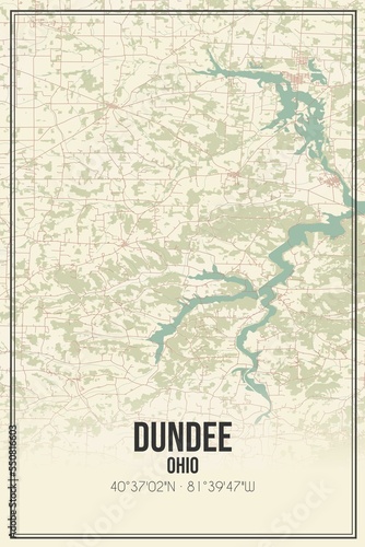 © Rezona, Fototapeta premium Retro US city map of Dundee, Ohio. Vintage street map.