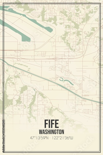 © Rezona, Fototapeta premium Retro US city map of Fife, Washington. Vintage street map.