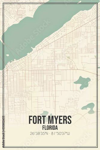 © Rezona, Obraz premium Retro US city map of Fort Myers, Florida. Vintage street map.