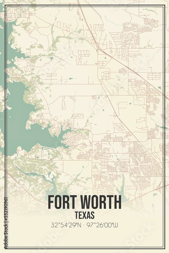 © Rezona, Fototapeta premium Retro US city map of Fort Worth, Texas. Vintage street map.