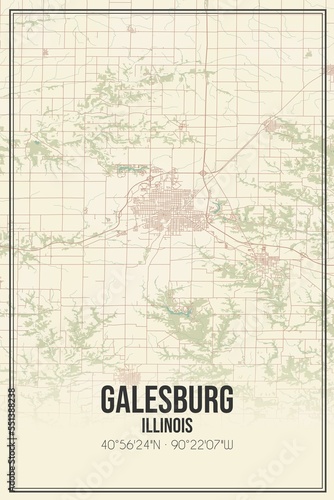 © Rezona, Fototapeta premium Retro US city map of Galesburg, Illinois. Vintage street map.