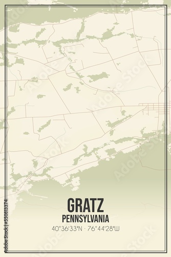 © Rezona, Fototapeta premium Retro US city map of Gratz, Pennsylvania. Vintage street map.