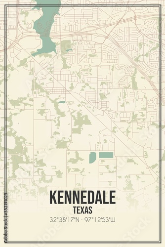 © Rezona, Fototapeta premium Retro US city map of Kennedale, Texas. Vintage street map.